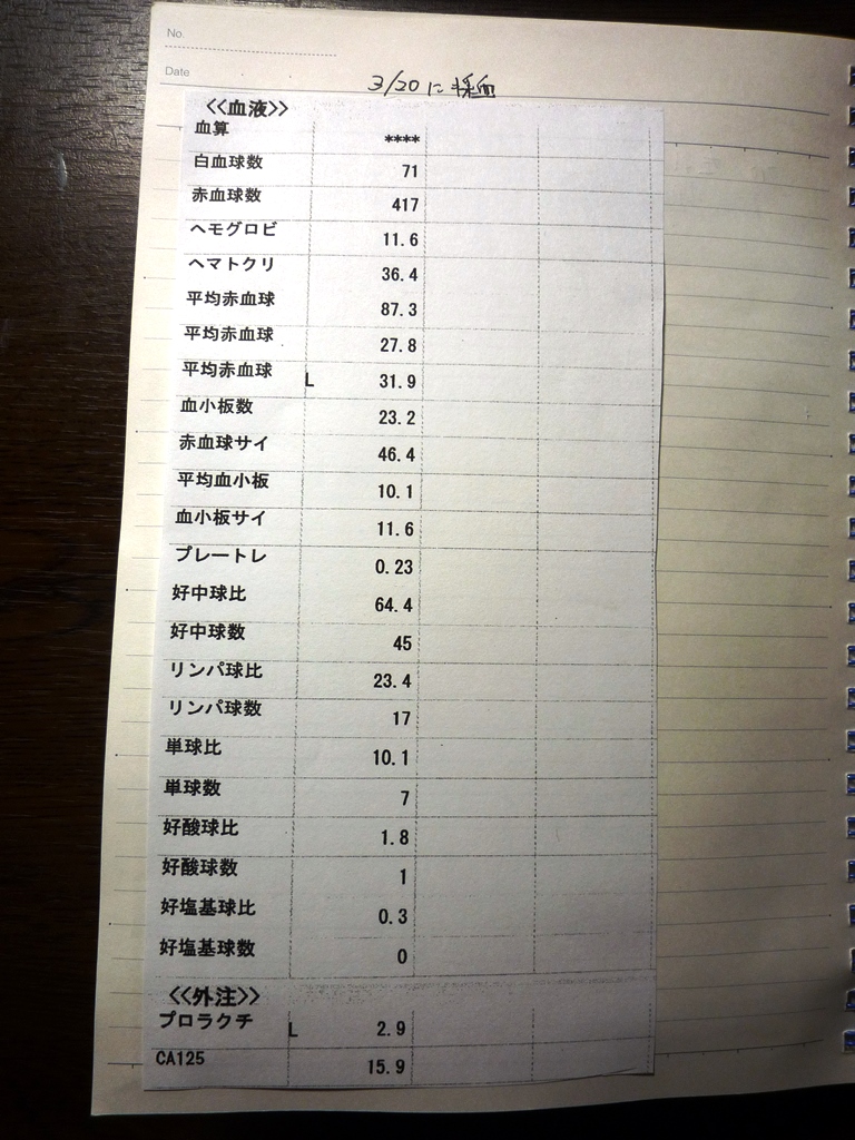 「で、CA125は予想通り、正常の範囲内です。良かったね」