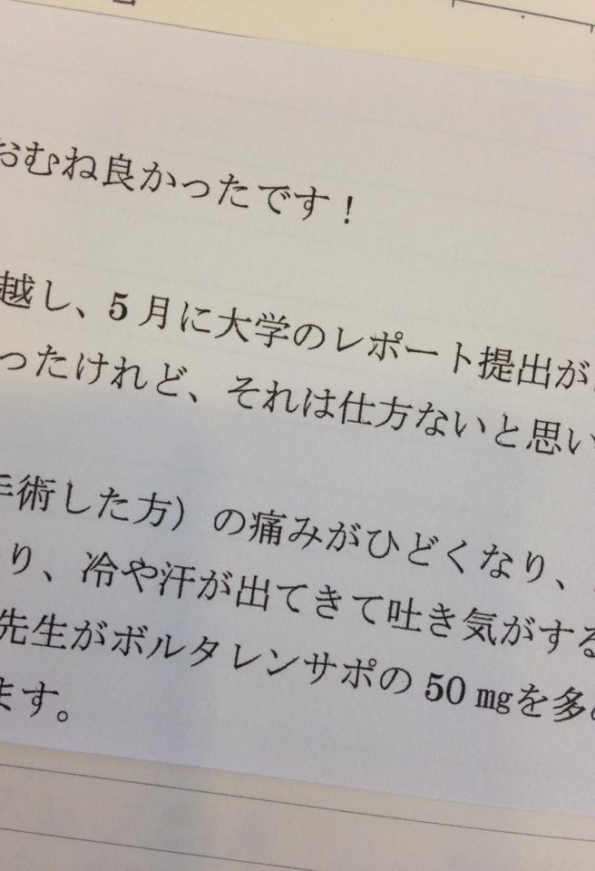 「(事情説明とともに)ホントは現地に行きたかったけれど、S先生のところに入院してたから、行けなかったんですよ」