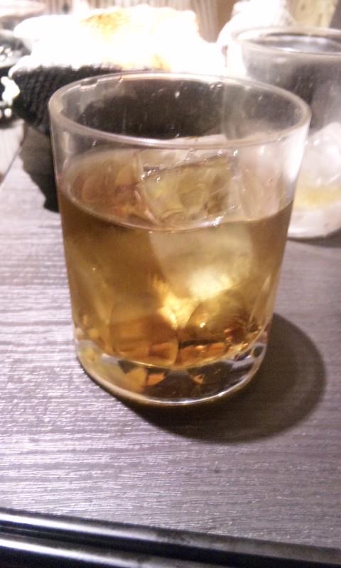 梅酒に抹茶のような風味が加わってます。私はロックでいただきましたが、お湯割りにしてもらっても美味しいとの説もあり。