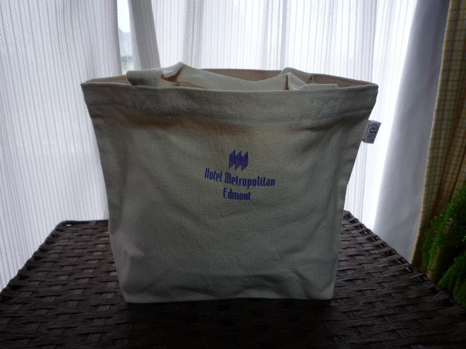 以前泊まったホテルで、サービスとして頂いたエコバッグ。毛糸とかぎ針をしまっておくのにちょうどよい大きさです。