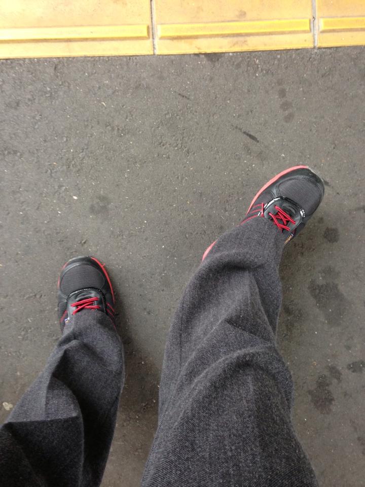 「あ、あの、今日寒かったから、安全靴はいてきた」