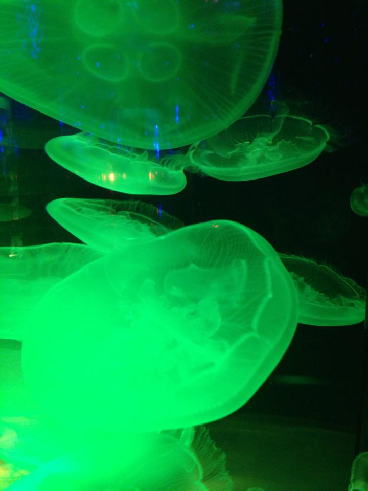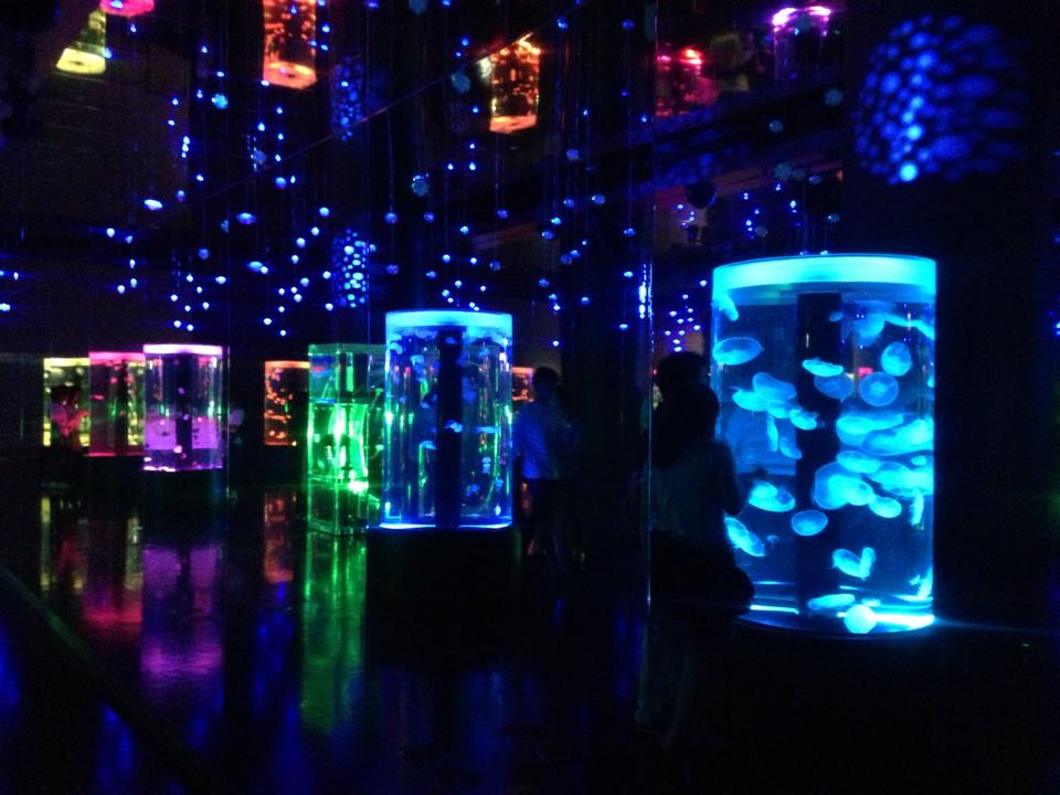 独特のライトアップで楽しませてくれる、くらげの部屋をまずは堪能する。